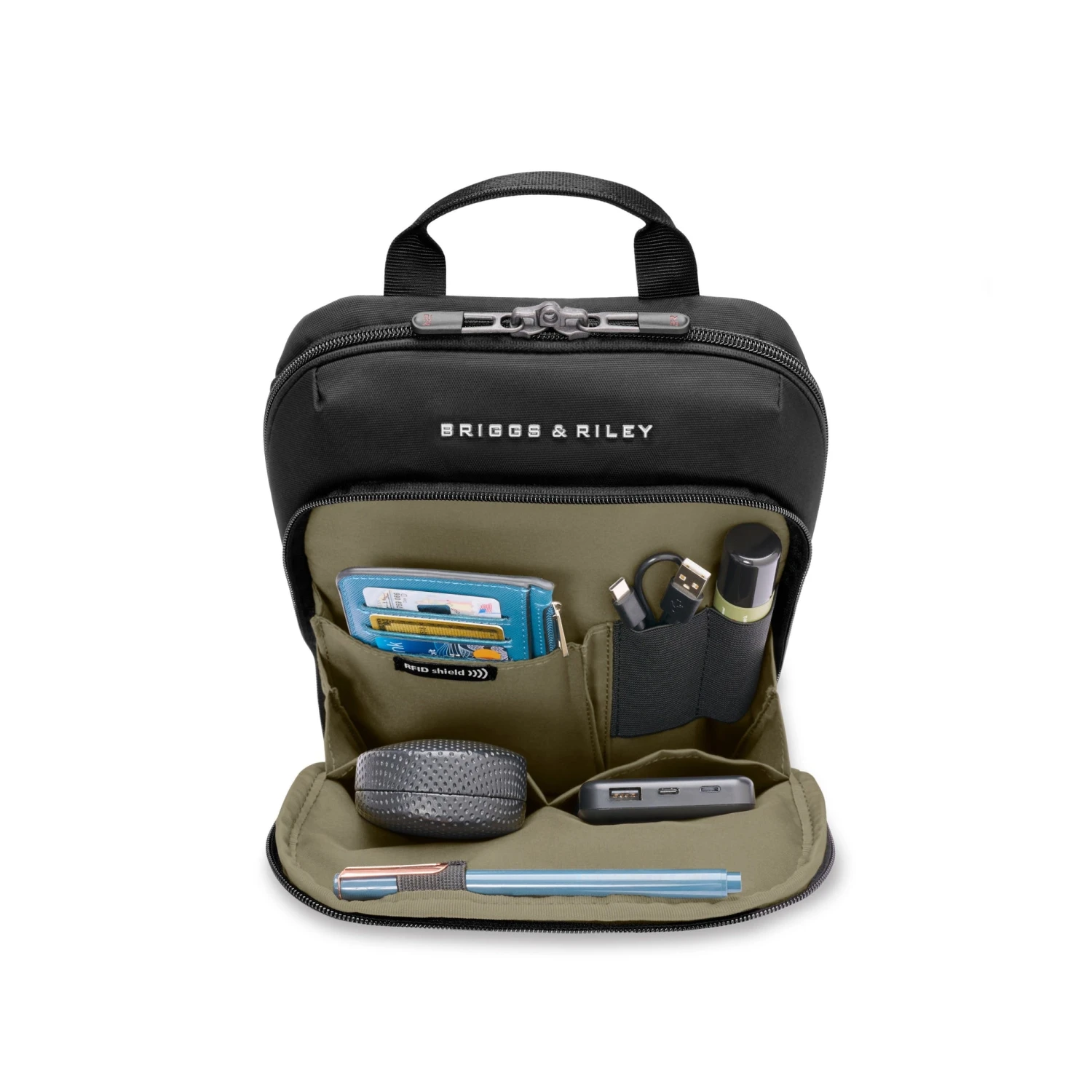 - Front compartment equipped with organization and a RFID shielding to provide extraordinary protection from digital pickpockets.