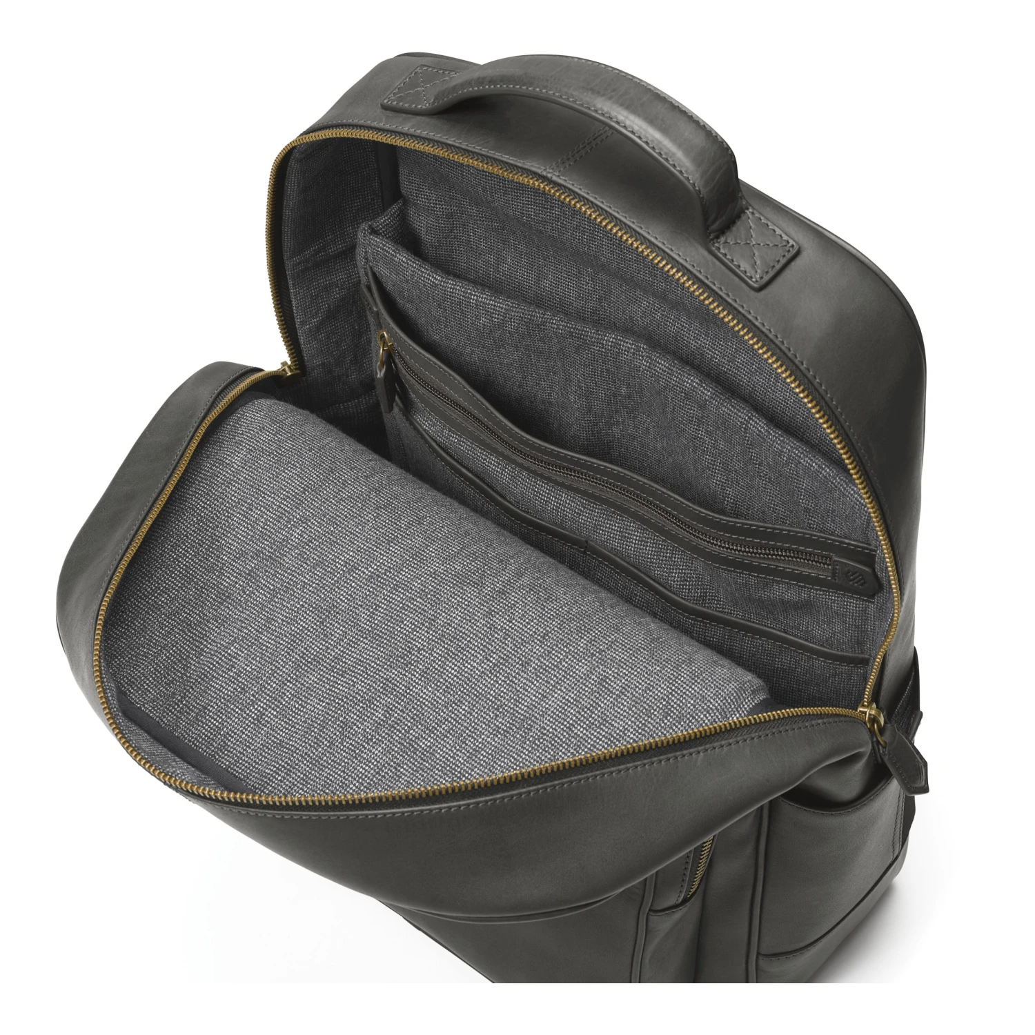 - Top leather carry handle.