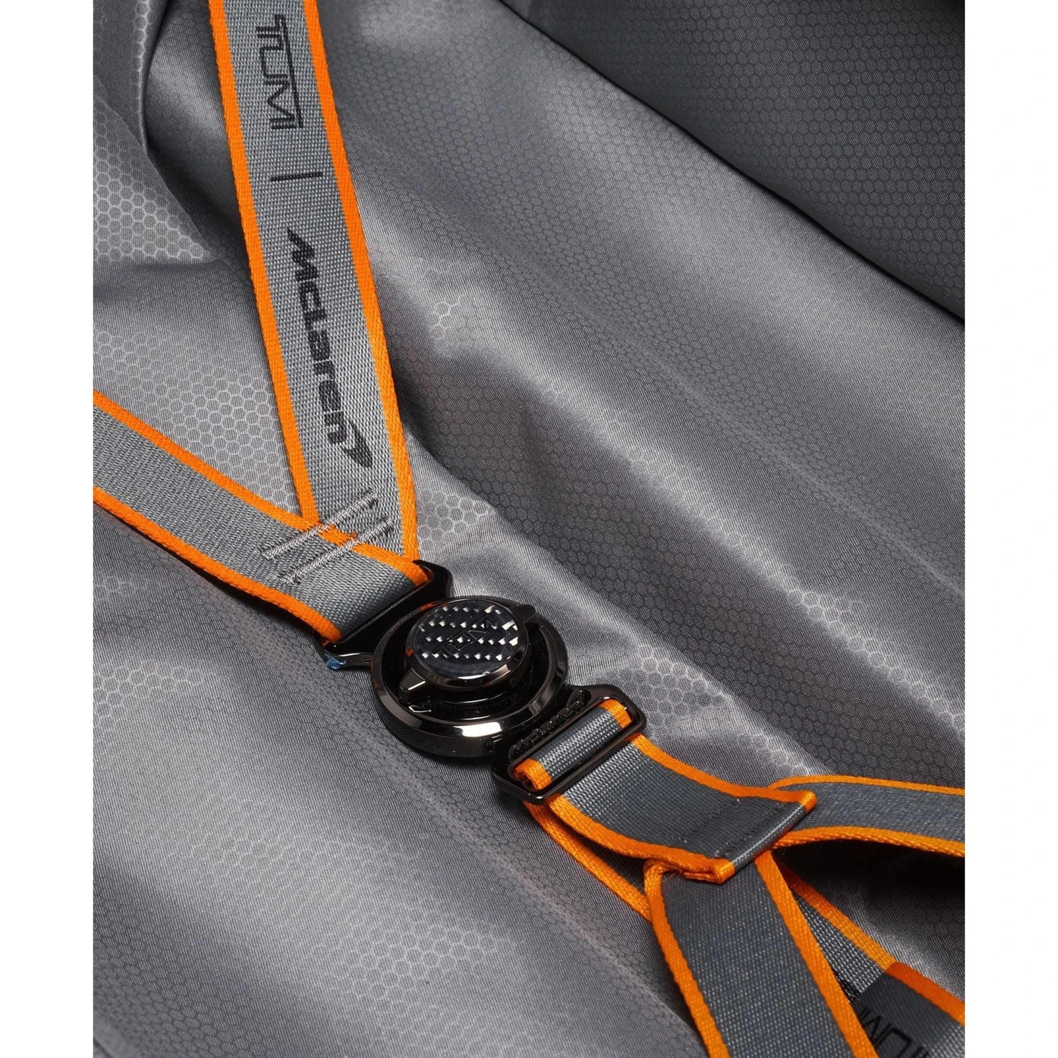 The engineering science behind McLaren and the product innovation of TUMI have come together for a seamless integration of lifestyle, fashion and technology. Echoing automotive design, this carry-on is crafted with a mix of exceptionally durable materials including Tegris, an aero-inspired molded front panel, and CX6 carbon fiber accents throughout. The influence continues with compression straps reminiscent of McLaren’s 6-point harness, while Papaya highlights bring a signature touch. Complete with a USB port, this expandable case delivers superior functionality and versatility without sacrificing design.